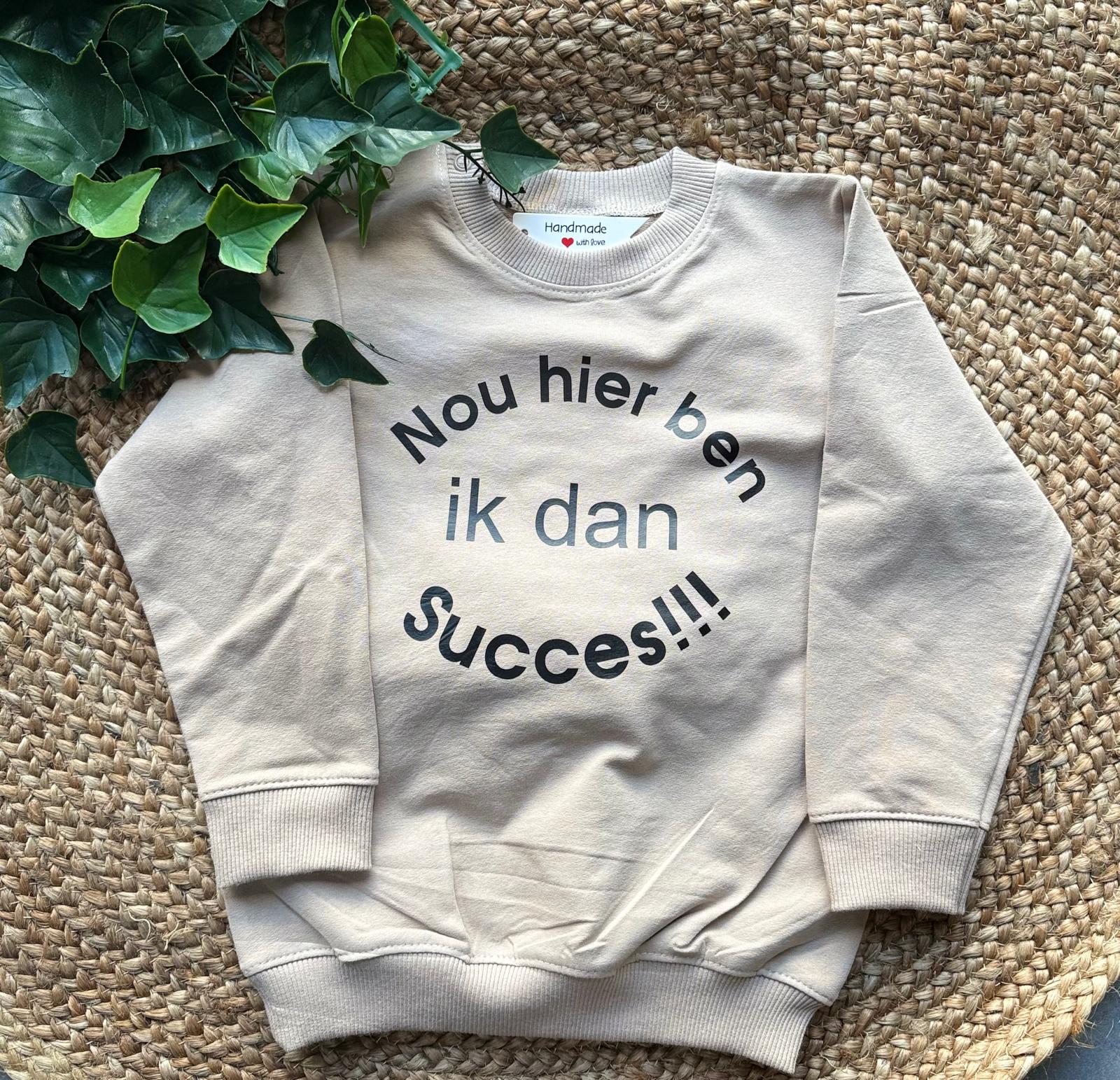Op de Zand kleurige sweater is de opdruk in het zwart